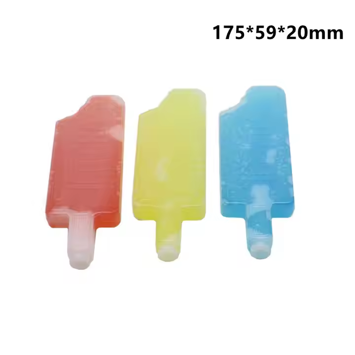 Products DescriptionProducts DescriptionItemSpecificationMaterialPackingDrink cooler brick15*67*20mm175*59*20mmHDPE plastic + gel cooling liquidInstructions:This product will be put into the refrigerator freezer, frozen after 12 hours into the ice bag, in the upper part a food, bev